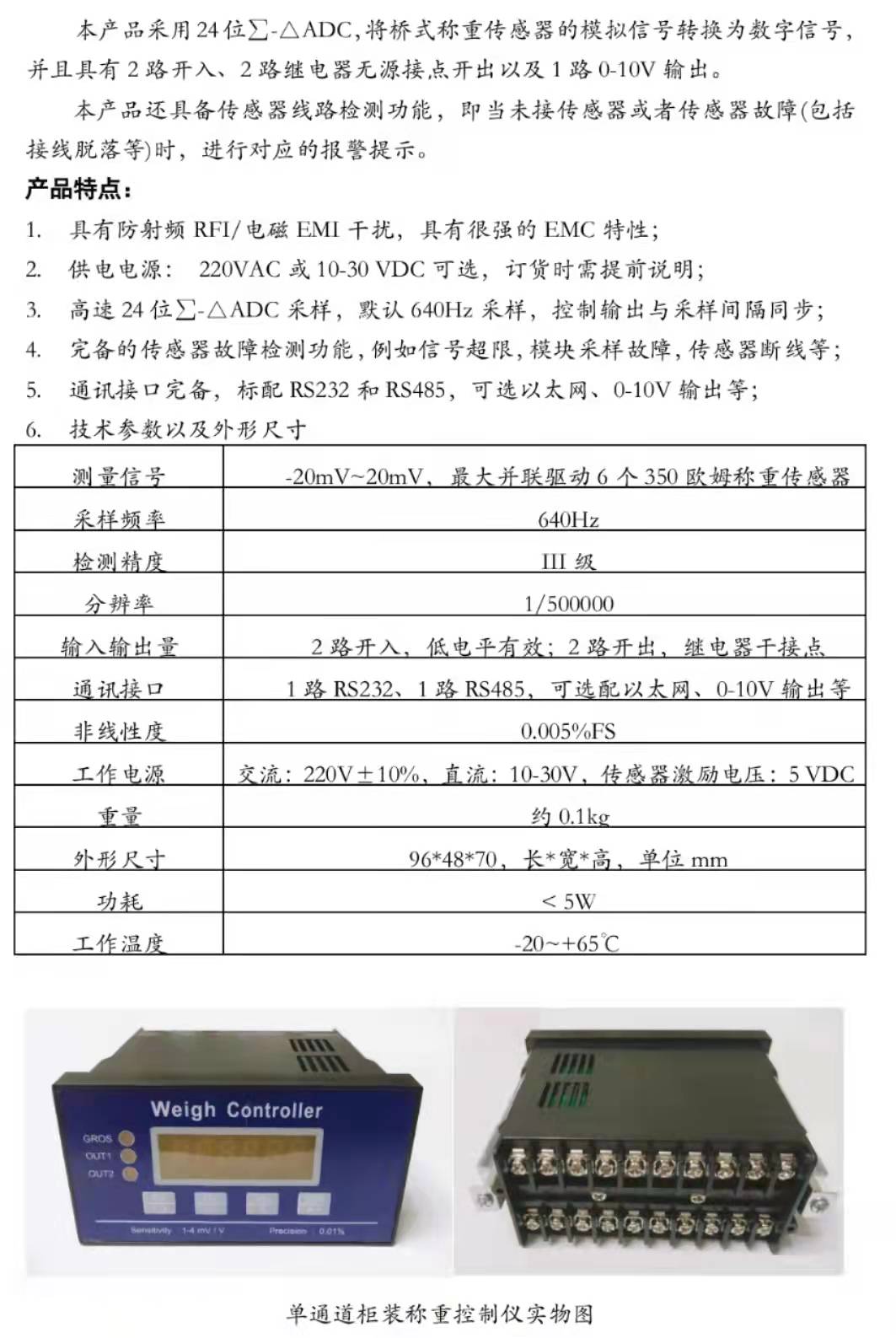 單通道柜裝稱重控制儀