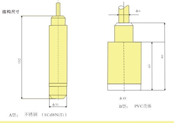 PT311型投入式液位變送器(也稱靜壓式液位變送器)選用進(jìn)口帶防腐膜片敏感組件,將芯片裝入一個(gè)不銹鋼(或PVC)殼體內(nèi),頂部的鋼帽起保護(hù)傳感器膜片的作用,同時(shí)使液體流暢地接觸到膜片。該產(chǎn)品用特制的防水中空電纜使感壓膜片的背壓腔與大氣良好相通,測量液位不受外界大氣壓變化的影響,測量準(zhǔn)確,長期穩(wěn)定性好,并具有優(yōu)良的密封及防腐性能,可直接投入水、油等液體中長期使用。PVC材料的外殼及電纜可測量多種防腐蝕性液體。